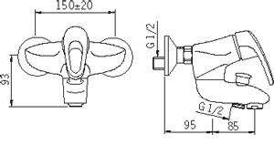 Смеситель для ванной Oras Safira 1072X, однорычажный. Расход воды 19,8 л/мин и 12 л/мин с ограничителями расхода, шаровый картридж.