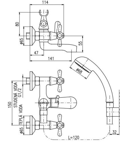 Rav Slezak Morava MK154.5/1 смеситель для ванны с керамическим переключателем. Керамический картридж. Жесткая подводка. Установка на стену.