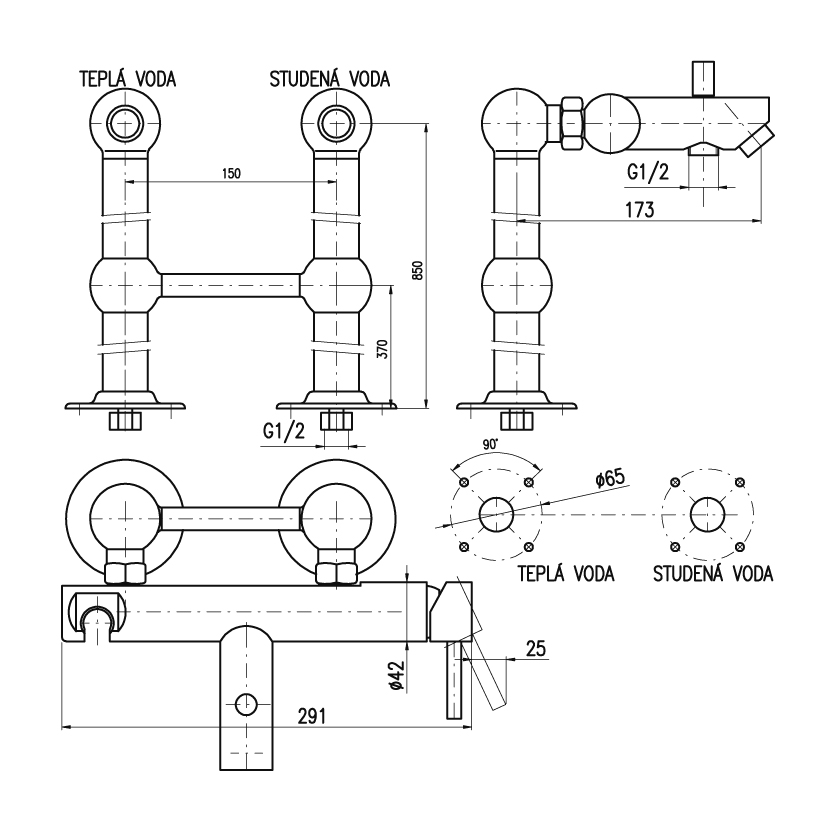 Rav Slezak Seina SE950.5/2 смеситель для ванной и душа. С ручным гигиеническим душем в комплекте. Монтаж напольный.
