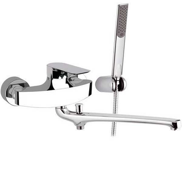 - Душевой гарнитур: лейка с 1 режимом струи, настенный фиксированный держатель, металлический шланг длиной 150 см.