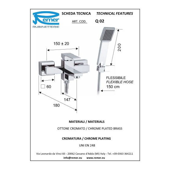 Смеситель для ванны Remer Qubica Q02.