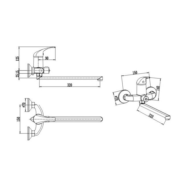 Смеситель для ванны Ростовская Мануфактура Сантехники SL128-006E универсальный.