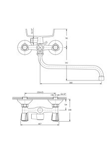 Pioneer PI7950-51 - Смеситель двуручный для ванны с поворотным изливом, хром