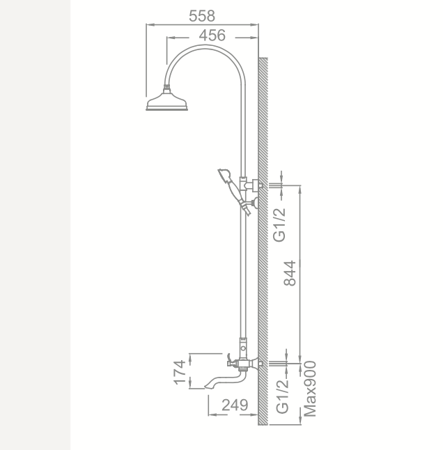 Конструкция крепится на стену. Изготовлен из высококачественной латуни с покрытием цвета хром, не теряет цвет в процессе эксплуатации, покрытие устойчиво к царапинам, превосходно защищает от коррозии. Такой смеситель будет служить верным помощником в обиходе, неприхотлив в уходе.