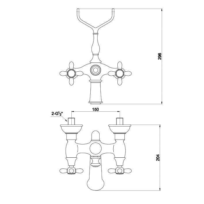 Двухвентильный смеситель с не поворотным изливом, монтируемый в два отверстия. Имеет долгий срок эксплуатации за счет качественных деталей, неприхотлив в уходе. Дополнит любой интерьер в классическом или ретро стиле.