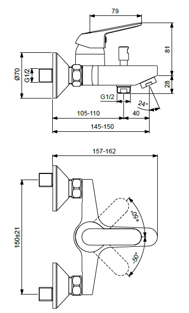 - Керамический картридж 35 мм с функцией HWTC (регулировка максимальной температуры воды).
