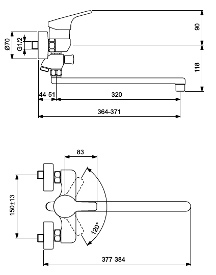 - Переключатель душ/излив.