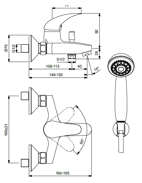 - Душевой шланг длиной 1,5 м.