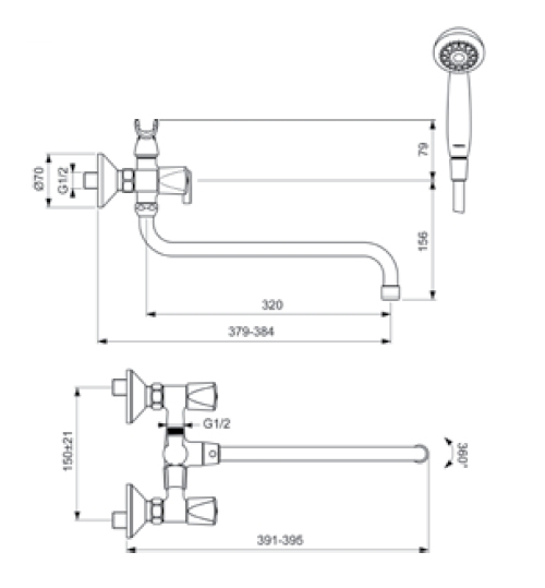 - Переключатель душ/излив.