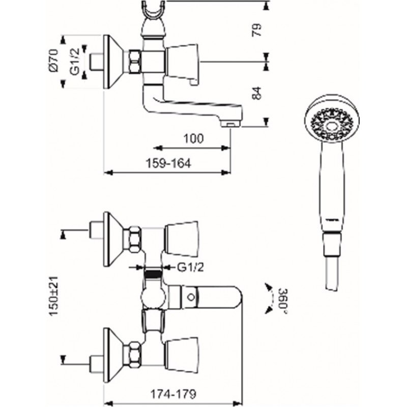 - Переключатель душ/излив.