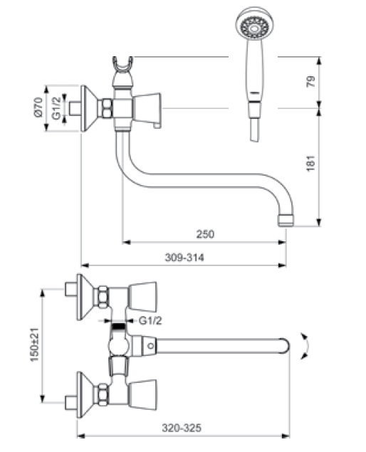 - Керамические кран-буксы (Германия) с углом поворота 180 градусов делают точную настройку температуры и напора воды.
