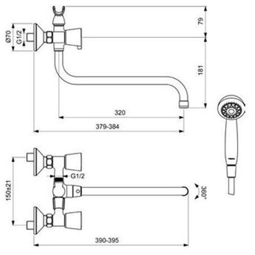 - Переключатель душ/излив.