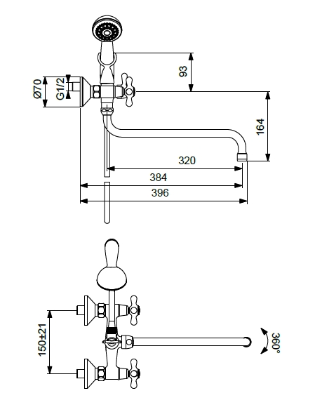 Смеситель для ванны Vidima Retro BA129AA универсальный Хром