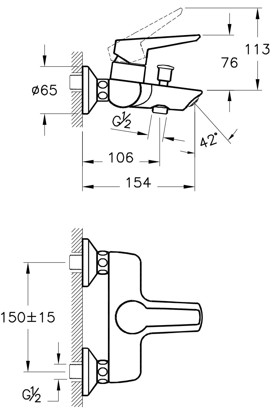 Однорычажный смеситель с фиксированным изливом и аэратором, с установкой на стену. Имеет долгий срок эксплуатации за счет качественных деталей, неприхотлив в уходе. Дополнит любую ванную комнату в современном стиле четкими линиями и изящной формой конструкции.