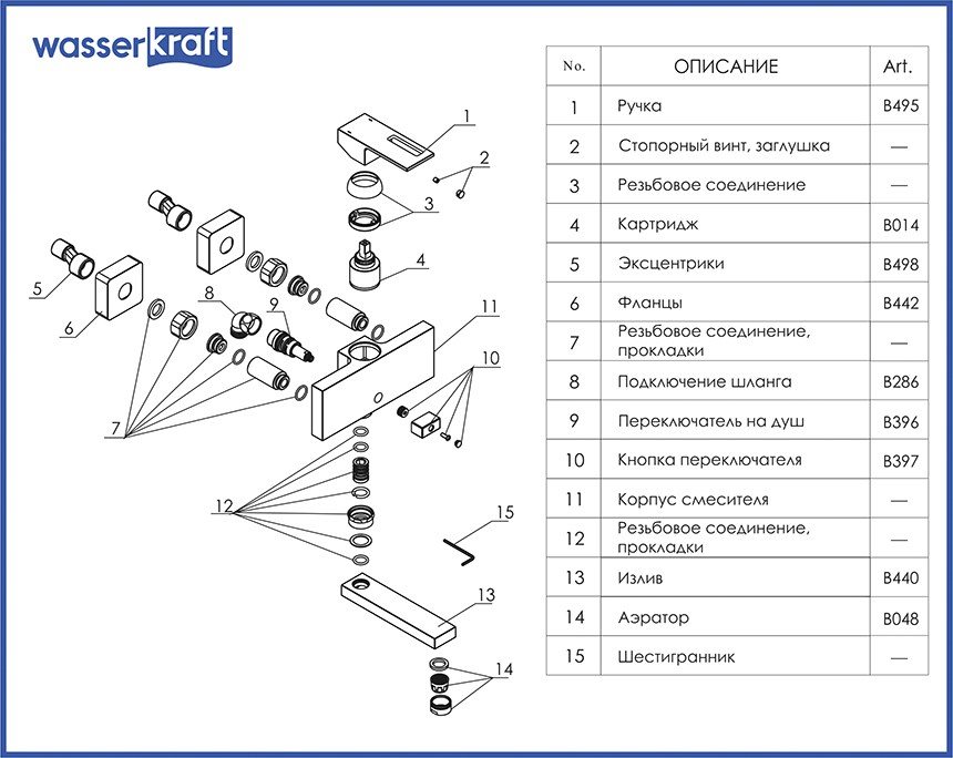 Смеситель для ванны Wasser Kraft Alme 1501.