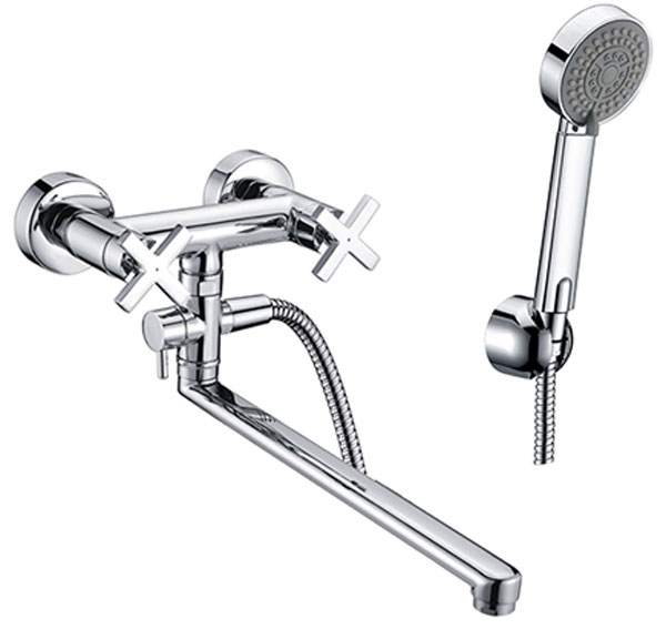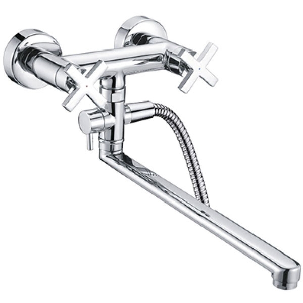 Двухвентильный смеситель с поворотным изливом и аэратором. Имеет долгий срок эксплуатации за счет качественных деталей, неприхотлив в уходе. Дополнит любую ванную комнату своей функциональностью и стильной формой конструкции.