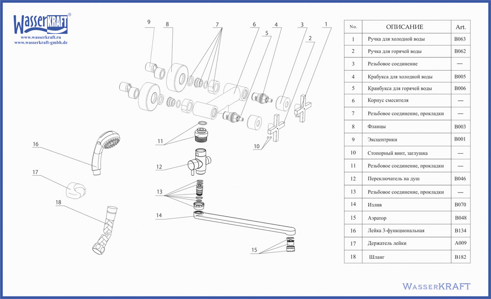 Смеситель для ванны Wasser Kraft Weser 7802L.