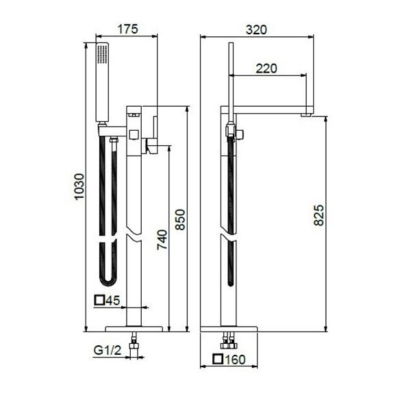Напольный смеситель для ванны Webert Pegaso PE851101560 однорычажный, в комплекте с душевым гарнитуром.
