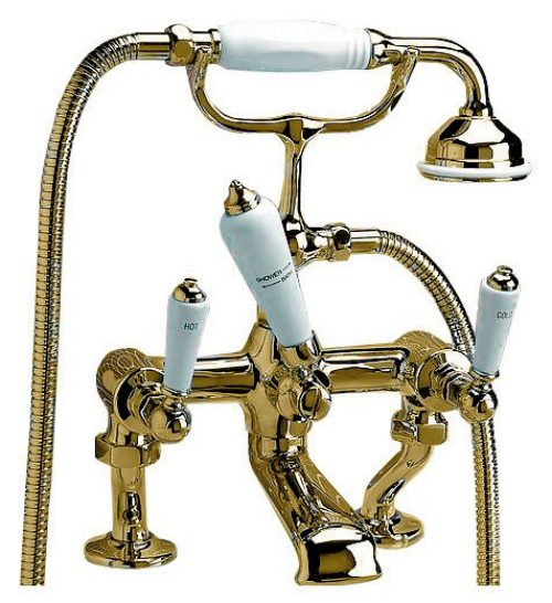 Смеситель на борт ванны врезной с лейкой и шлангом Devon&Devon Dandy Латунь.