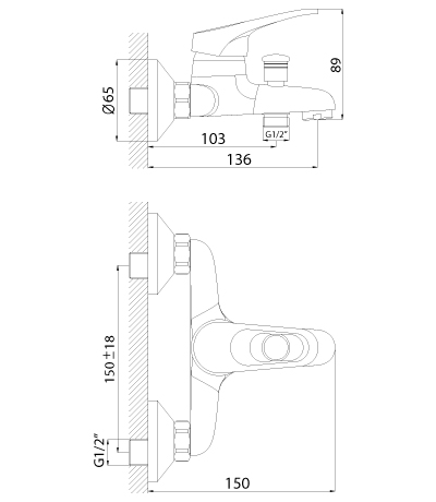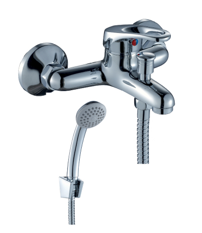 Смеситель Rossinka B35-31 для ванны. Пластиковый аэратор с функцией легкой очистки, керамический картридж 35 мм, кнопочный переключатель. Аксессуары в комплекте (шланг 1,5 м, настенное крепление, 1-функциональная лейка с функцией легкой очистки) Присоединительная группа (эксцентрики с отражателями) для вертикального крепления