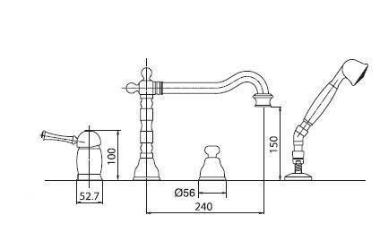 Смеситель Bugnatese Denver 6455 на борт ванны. Размеры: излив – длина 240 мм, высота 150 мм. Цвет хром.