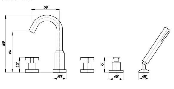 Смеситель на борт ванны Bugnatese Naxos 7680. Цвет хром.