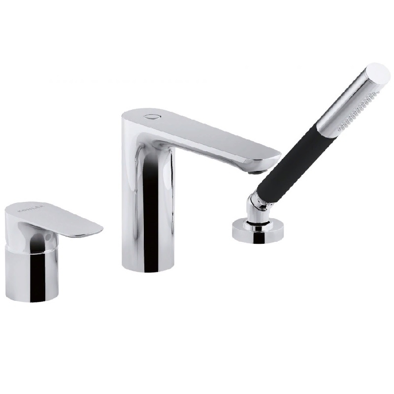 Смеситель для ванны и душа Jacob Delafon Aleo E72292-CP на 3 отверстия с ручкой из эластомера для большего комфорта. Цвет: хром.