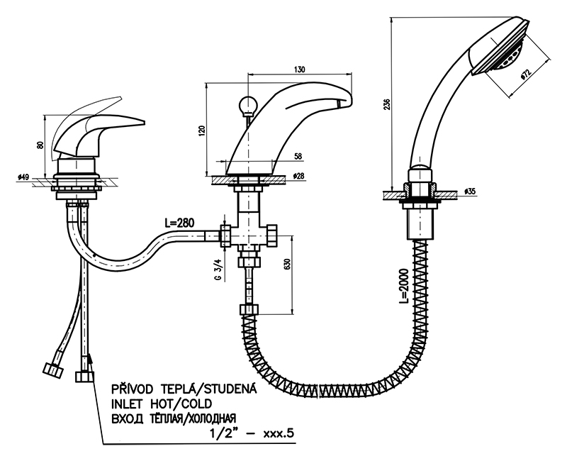 Смеситель на борт ванны Rav Slezak Dunaj D471.5S монолитный, с душевым гарнитуром, изготовлен из высококачественной латуни, которая исключает какую-либо коррозию. Латунные рукоятки. Качественный керамический картридж 40 мм Kerox, производство Венгрия, гарантирует долговечность и мягкий поток воды. Переключатель душ/излив в изливе. Пластиковый шланг с пружиной, которая обеспечивает лёгкое возвращение шланга в держатель. Длина шланга 2000 мм. Пластиковая душевая лейка с пятью режимами, с антикальк резиновыми насадками. В комплекте смеситель, шланг, душевая лейка и комплект крепления.