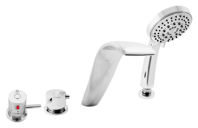 Термостат на борт ванны Rav Slezak Dunaj Termostat DT261.5P монолитный, с душевым гарнитуром, изготовлен из высококачественной латуни, которая исключает какую-либо коррозию. Латунные рукоятки. Качественный керамический термостатический картридж 40 мм Kerox, производство Венгрия, гарантирует долговечность и мягкий поток воды. Керамический переключатель душ/излив. Пластиковый шланг с пружиной, которая обеспечивает лёгкое возвращение шланга в держатель. Длина шланга 2000 мм. Пластиковая душевая лейка с четырьмя режимами, с антикальк резиновыми насадками. В комплекте смеситель, шланг, душевая лейка и комплект крепления.