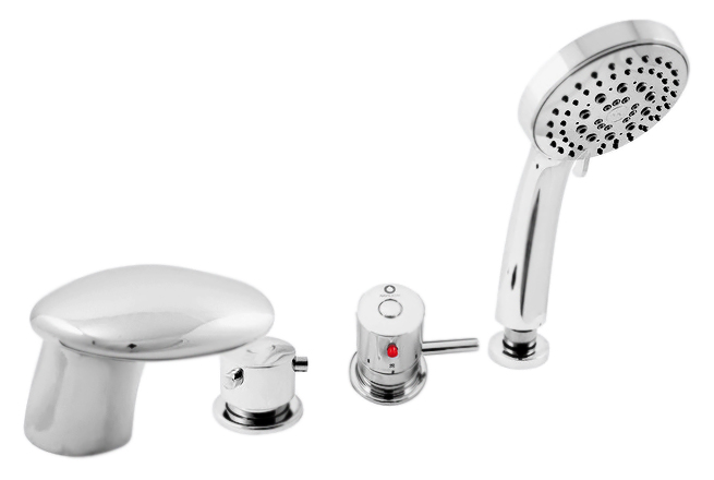 Термостат на борт ванны Rav Slezak Dunaj Termostat DT271.5P монолитный, с душевым гарнитуром, изготовлен из высококачественной латуни, которая исключает какую-либо коррозию. Латунные рукоятки. Качественный керамический термостатический картридж 40 мм Kerox, производство Венгрия, гарантирует долговечность и мягкий поток воды. Керамический переключатель душ/излив. Пластиковый шланг с пружиной, которая обеспечивает лёгкое возвращение шланга в держатель. Длина шланга 2000 мм. Пластиковая душевая лейка с четырьмя режимами, с антикальк резиновыми насадками. В комплекте смеситель, шланг, душевая лейка и комплект крепления.
