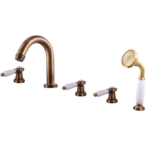 Принцип установки:смеситель ставится в специальные посадочные места в ванной. Предусмотрены места для установки трех кранбукс, одного излива и ручного душа. Ручной душ оснащен пружиной, которая упрощает возвращение шланга в посадочное место.
