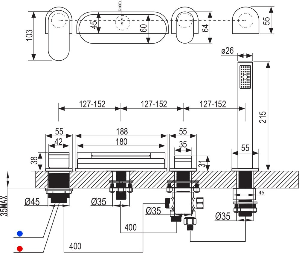 Однорычажный смеситель с фиксированным каскадным изливом Водопад, монтируемый в четыре отверстия. Имеет долгий срок эксплуатации за счет качественных деталей, неприхотлив в уходе. Превосходно подойдет для различных вариантов дизайна ванной комнаты.