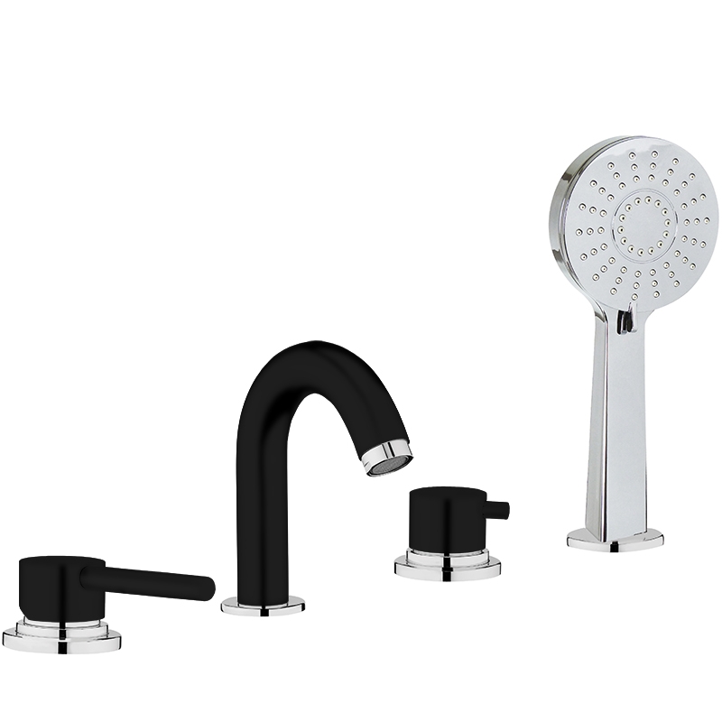 Смеситель на борт ванны Webert Elio EL850701015 однорычажный, устанавливаемый в четыре отверстия, в комплекте с душевым гарнитуром.