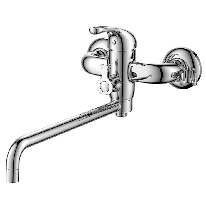 Смеситель для ванны D&K Eucharius Rhein DA1373301 с длинным поворотным изливом и душевым гарнитуром, однорычажный, на два отверстия для монтажа на стену.