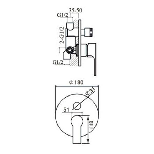 - Подключение душевого шланга диаметром G 1/2.