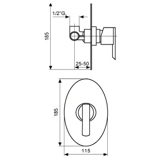 Смеситель Emmevi Elly 41019 для душа. Однорычажный, внутристенный с дивертером. Цвет хром.