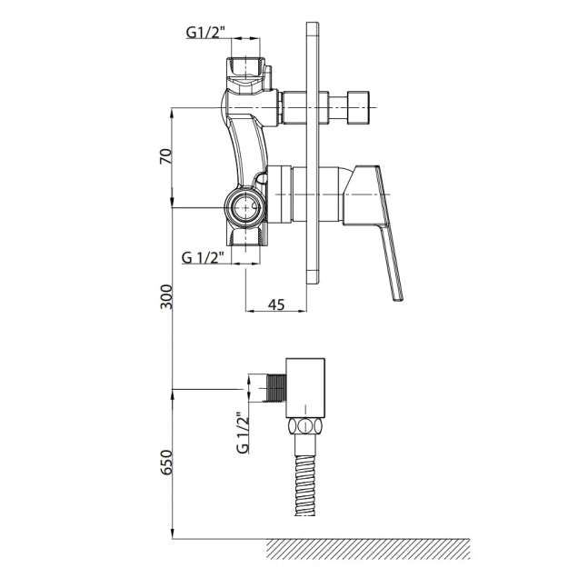 Смеситель в цвете хром, встраиваемый в стену. Современный дизайн конструкции подойдет для любой ванной комнаты в современном стиле, лаконично впишется в интерьер. Качественные материалы, которые используются в производстве, обеспечивают исправную работу на протяжении всего срока службы. Поверхность приятна на ощупь, такой эффект достигается тщательной полировкой всего корпуса. Материалы устойчивы к коррозии и перепадам температур.