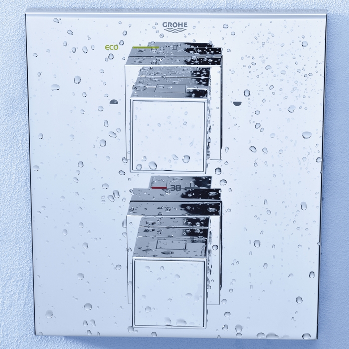 - Рукоятка расхода с экономичной кнопкой Grohe EcoButton и индивидуально устанавливаемым стопором.