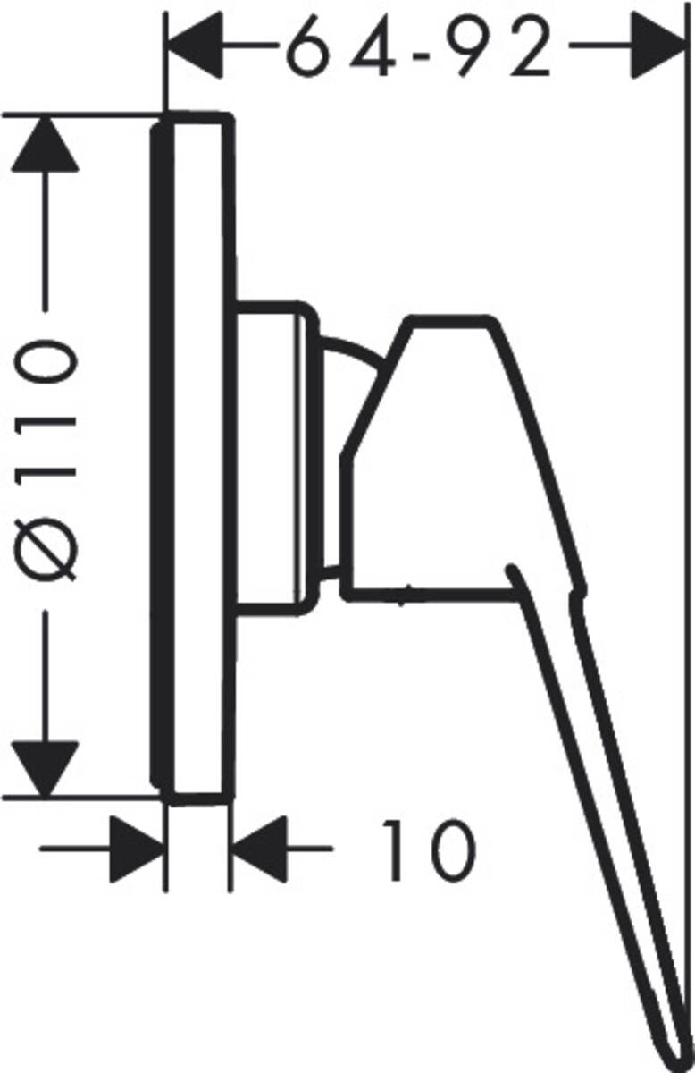 В комплект поставки входит: однорычажный смеситель для душа, рукоятка, гильза, розетка диаметром 10 см.