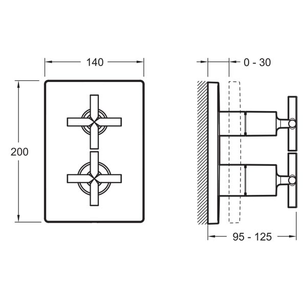 Термостатический смеситель для душа Jacob Delafon Modulo E98732-CP на 2 выхода с запорным клапаном.