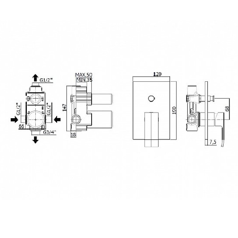 - Смеситель на 2 выхода с накладкой из нержавеющей стали,