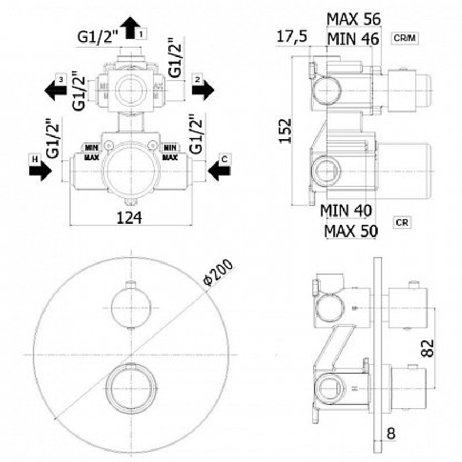 - Смеситель на 3 выхода с накладкой из металла, 3 положения + 3 комбо со стоп,