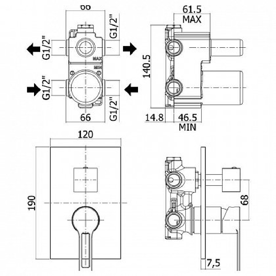 - Смеситель на 2 выхода с накладкой ABS, 2 положения + 1 комбо,
