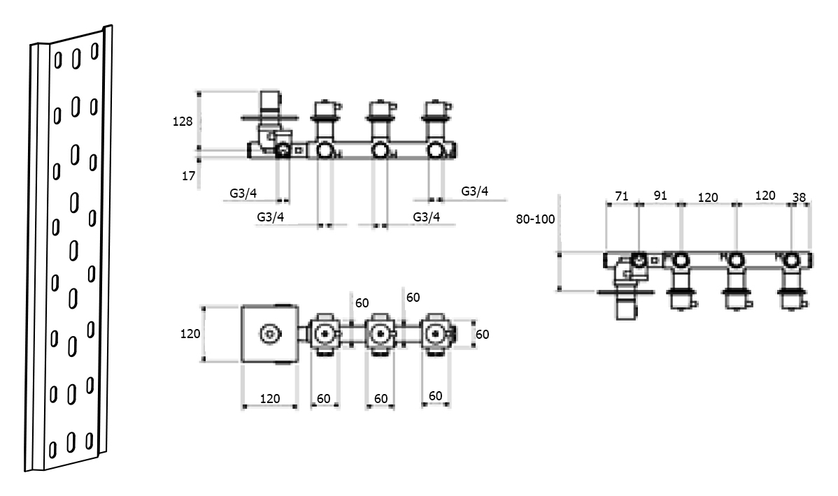 Смеситель для душа Webert Elio EL971502560 на три потока, в комплекте с внутренней частью и монтажной шиной (планкой).