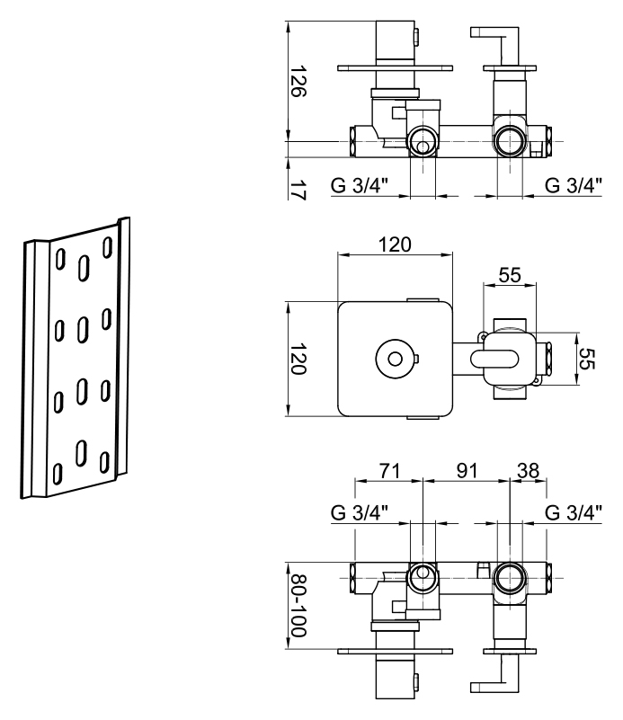 Встраиваемый смеситель для душа Webert Living LV971302560 с термостатом, на один поток, в комплекте с внутренней частью и монтажной шиной (планкой).