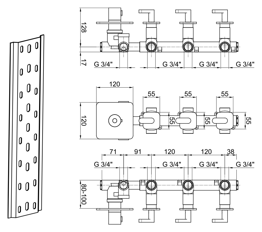 Встраиваемый термостат для ванны Webert Living LV971502015 на три потока, в комплекте с внутренней частью и монтажной шиной (планкой).
