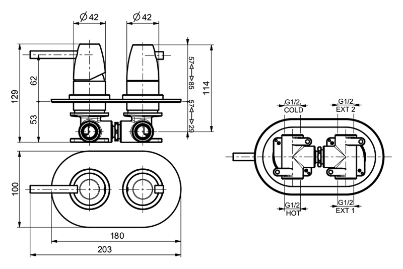 Смеситель для ванны Webert Opera moderna OE860101015 однорычажный, с переключателем (девиатором) на два потока, встраиваемый, на одно отверстие, в комплекте с внутренней частью.