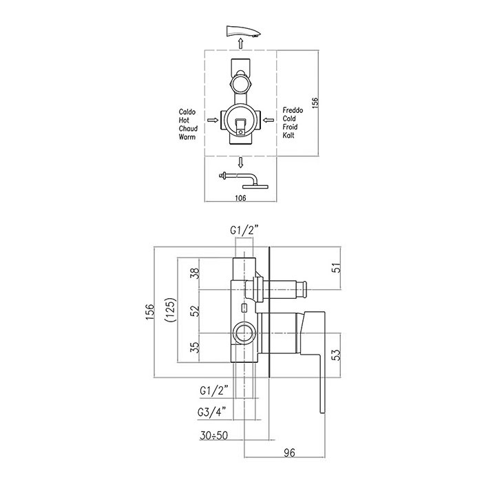 Смеситель для душа Webert Pegaso PE860101794 Золото матовое