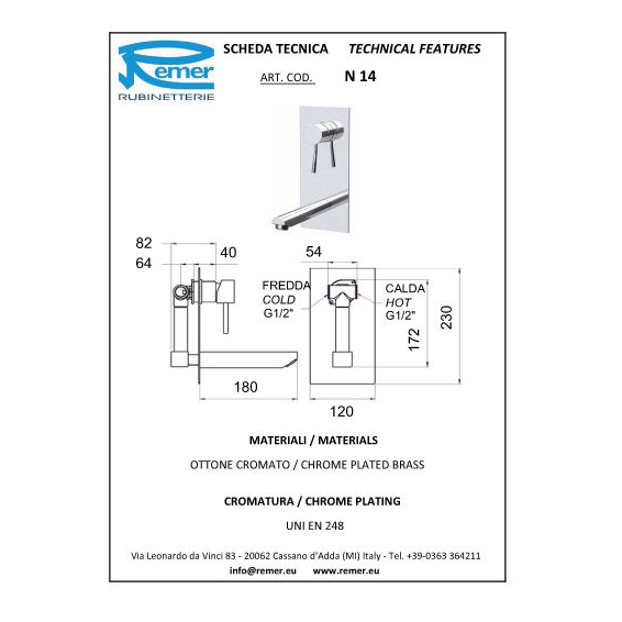 Смеситель для раковины Remer Minimal N14.
