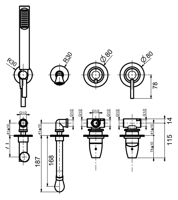 Смеситель для ванны Webert Opera moderna OE860312015 однорычажный, встраиваемый, на четыре отверстия, в комплекте с внутренней частью и с душевым гарнитуром.